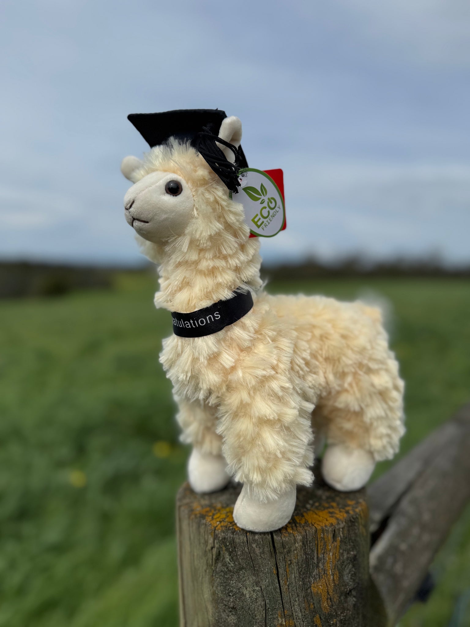 White Alpaca 33cm. Yellow Alpaca 28cm. Graduation 28cm